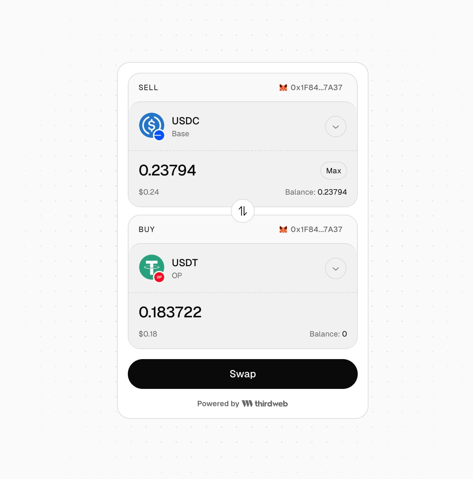 Swap Widget Playground