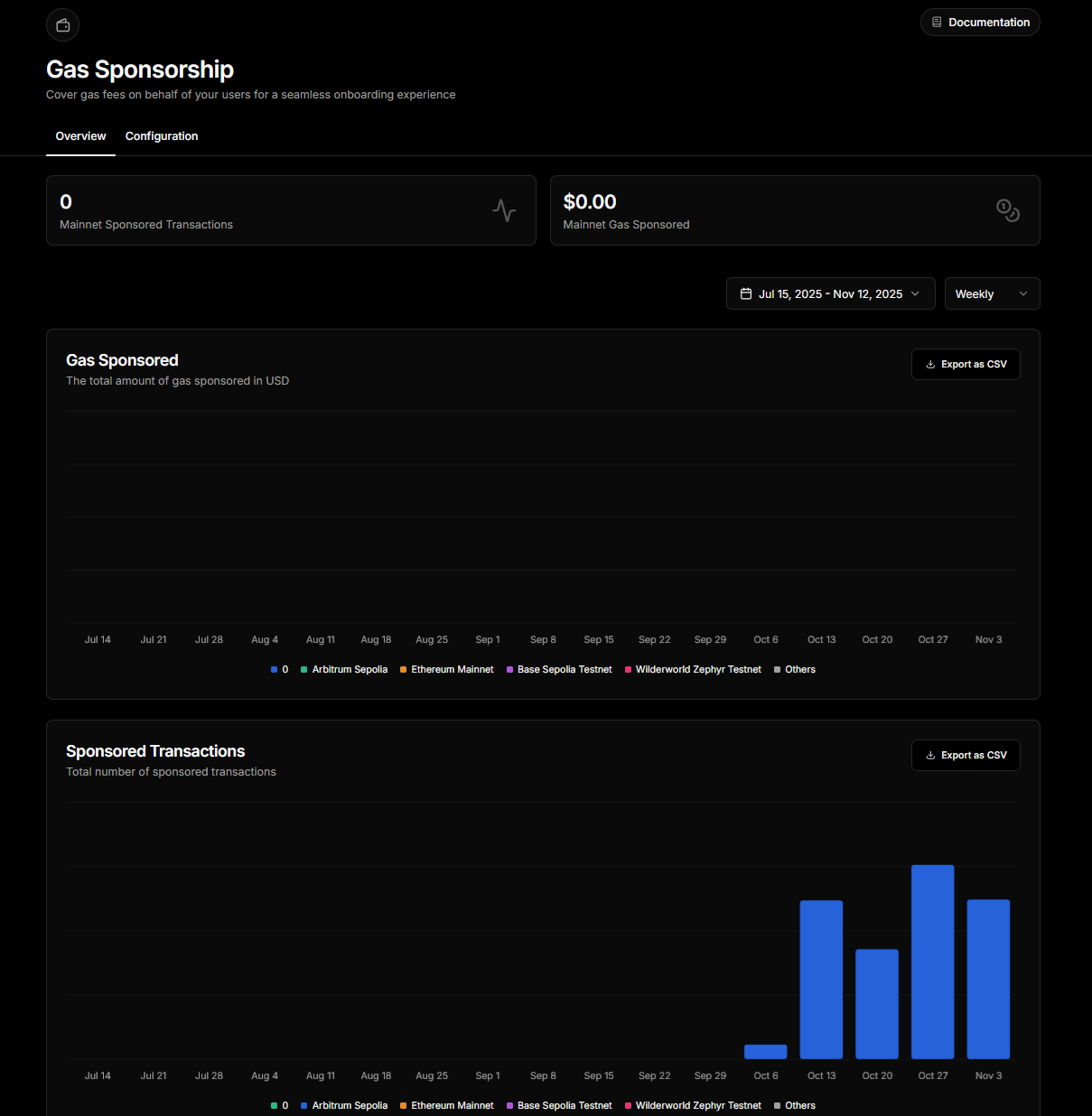 This section shows you your gas sponsorship usage regardless of the interface (or EIP/execution mode) used to sponsor said gas. You can track your usage here easily.
