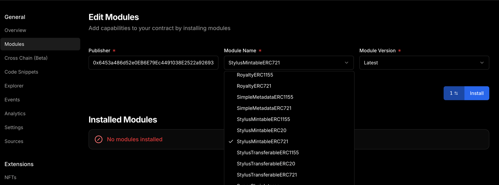 - If you wish to install / uninstall, navigate to modules tab on your contract page:
