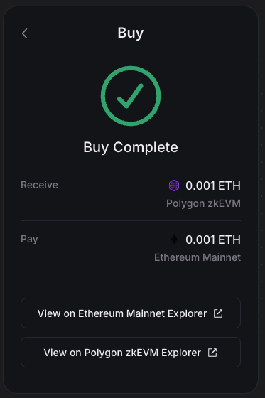 Allow your users to pay with any cryptocurrency or credit/debit card for transactions or tokens on any chain built on the Polygon stack. If you're building a chain on the Polygon stack, let us know!