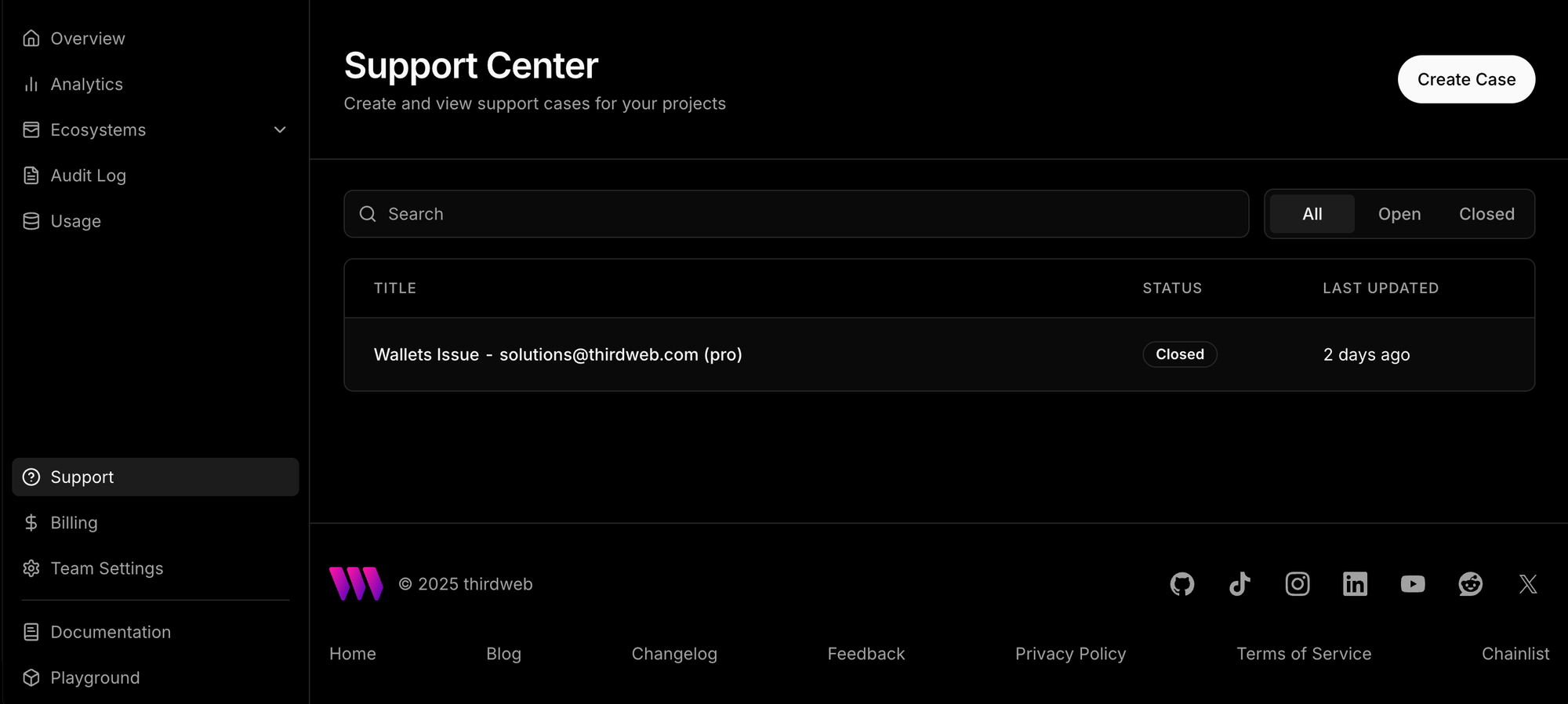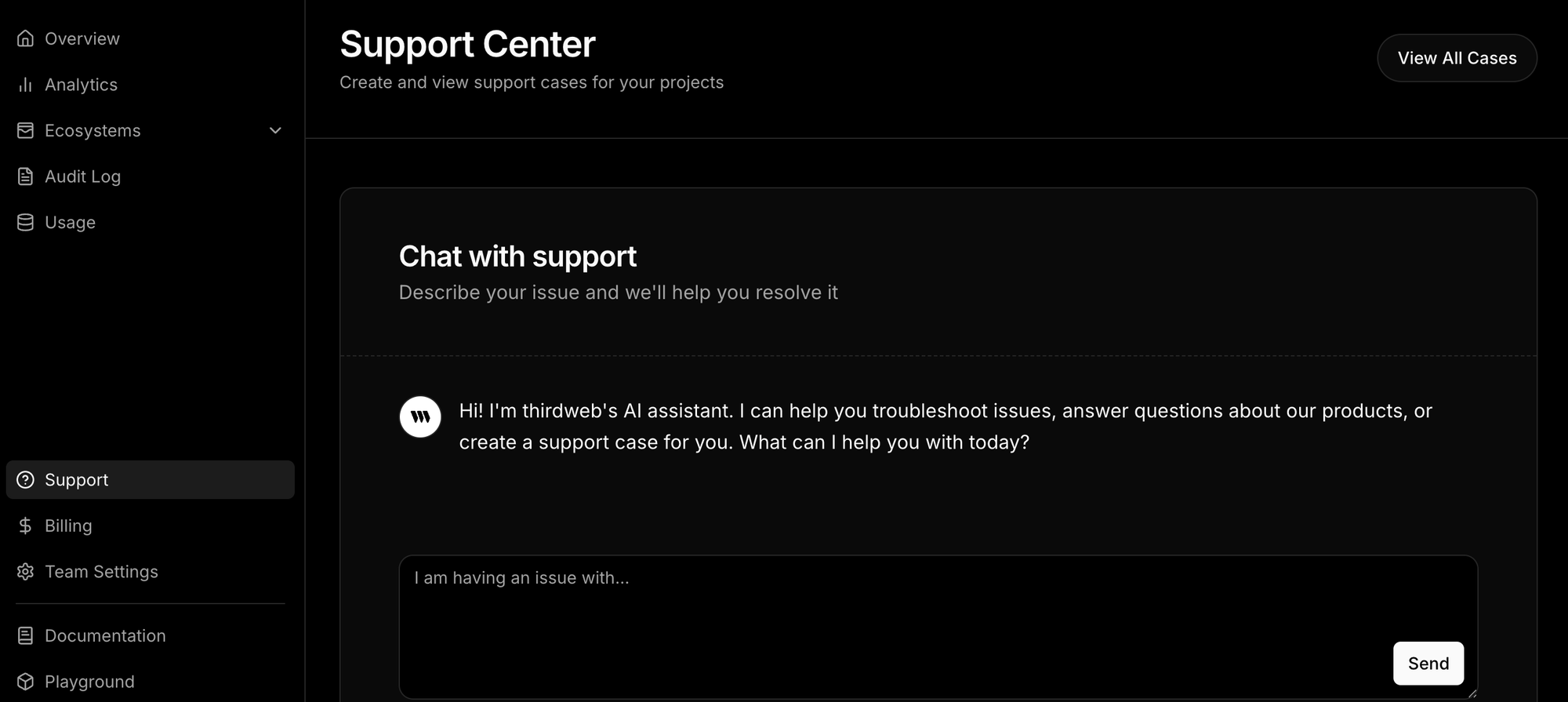 - For support SLAs by plan, visit: thirdweb.com/pricing