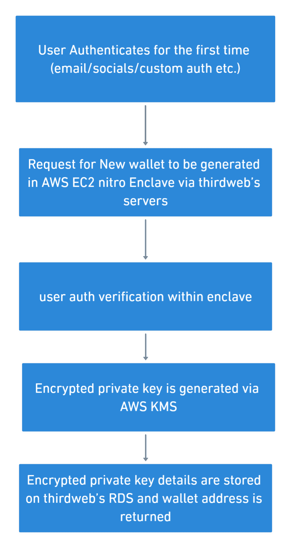 - User authentication data is verified within the enclave, ensuring that only legitimate, authenticated users can initiate wallet creation.