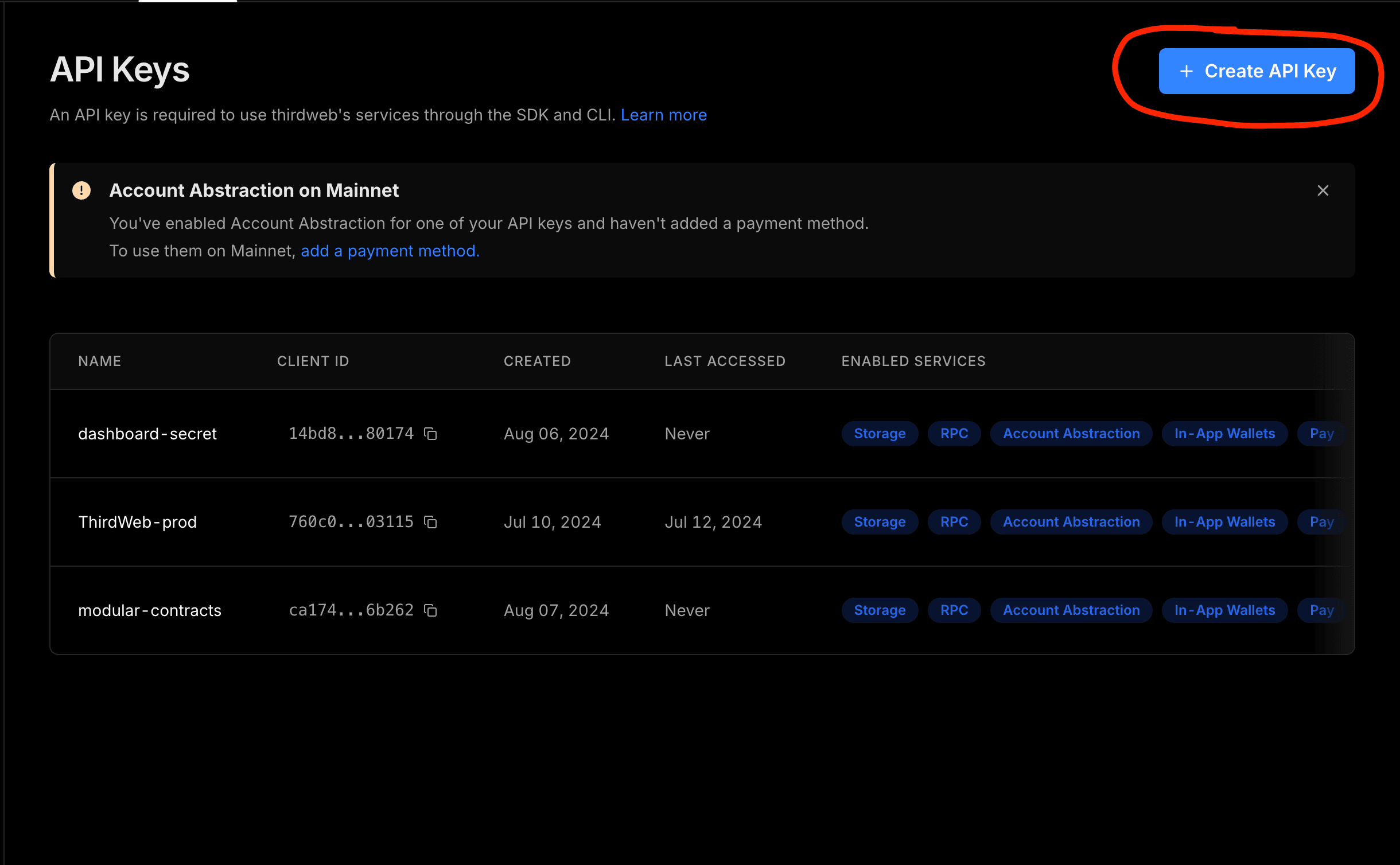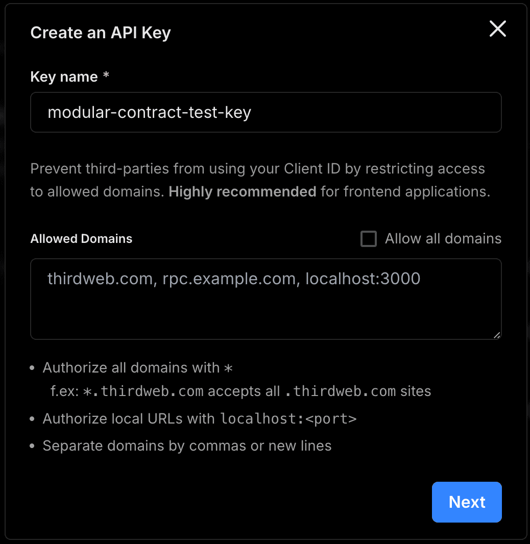 Go to the thirdweb Dashboard, Create a new Project to obtain API Key