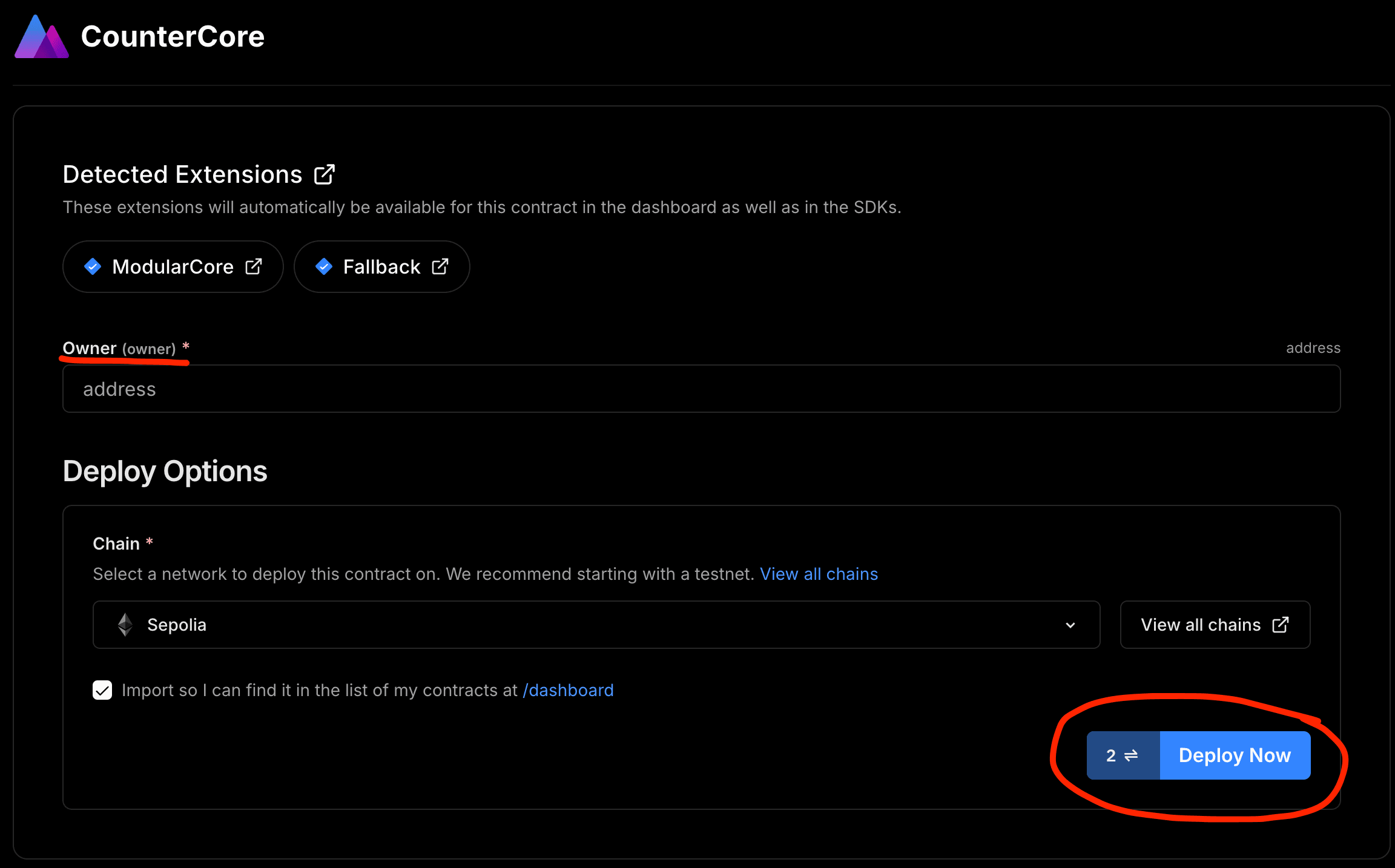 ownerof the contract and click "Deploy Now".