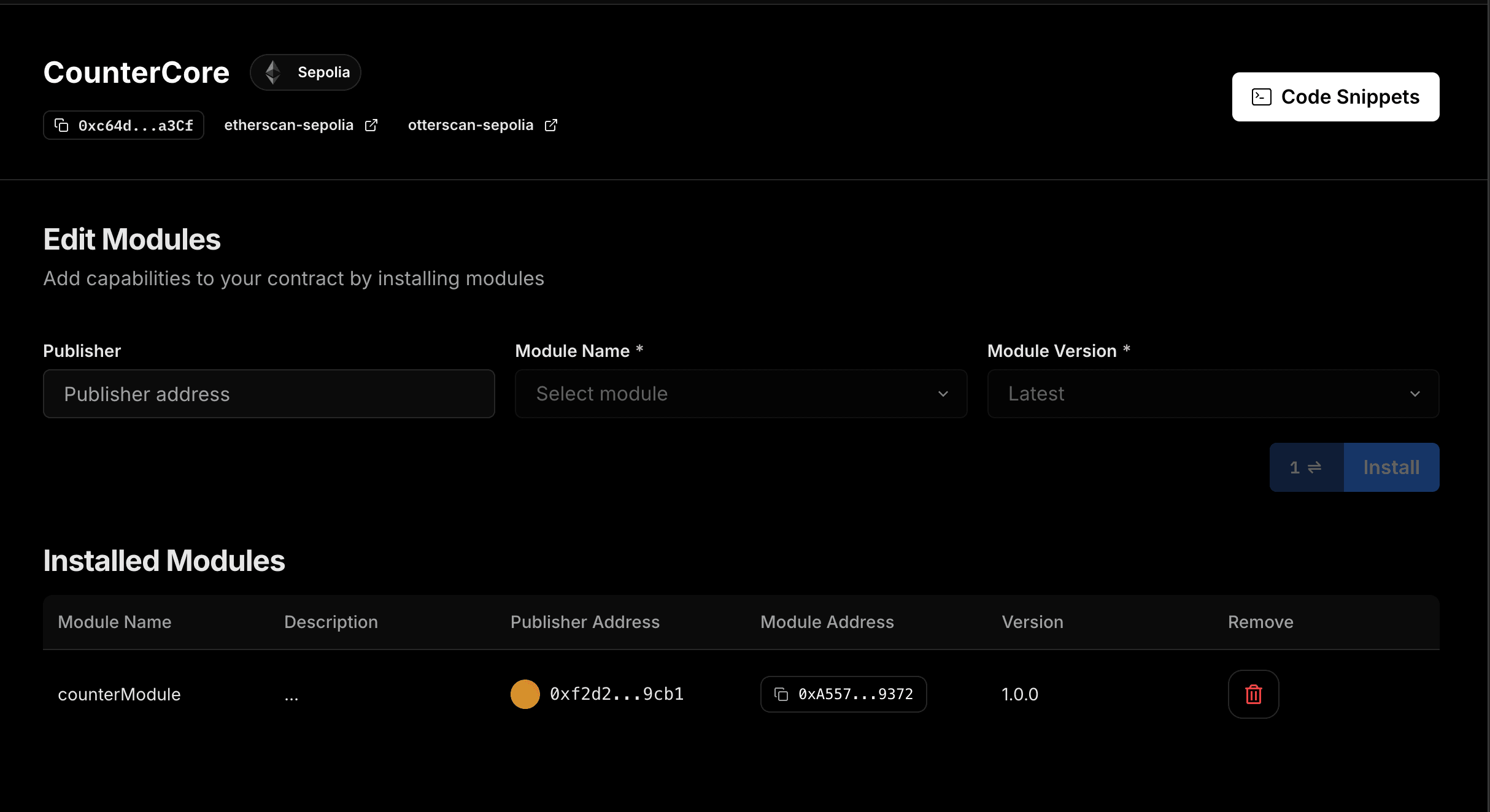 And there you have it! You have now deployed your very own Modular Contract!