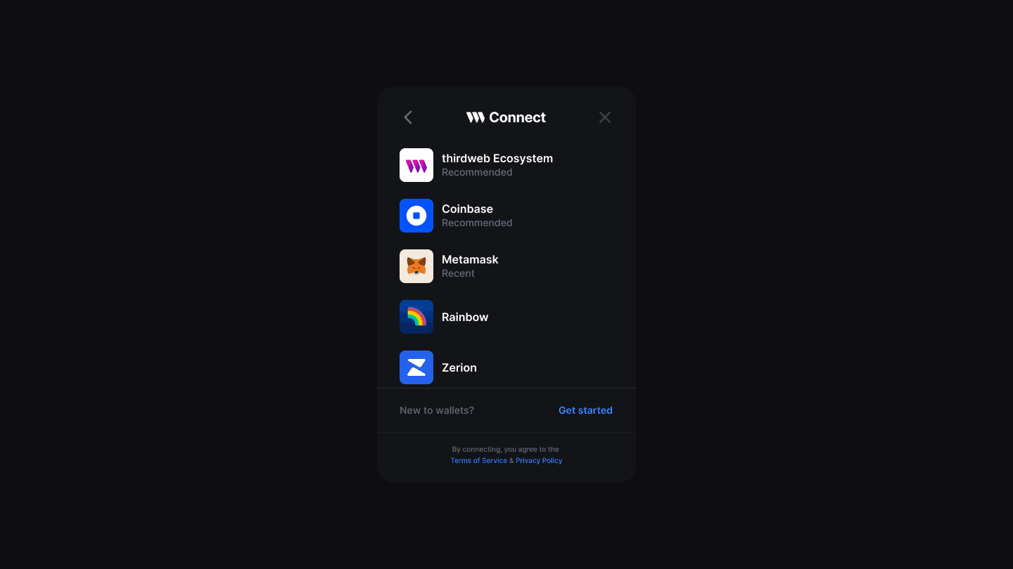 Partners can install thirdweb SDK and use the Partner ID you created for them to display your branded sign in flow. All login options in this sign in flow will create an in-app wallet that works across the ecosystem.