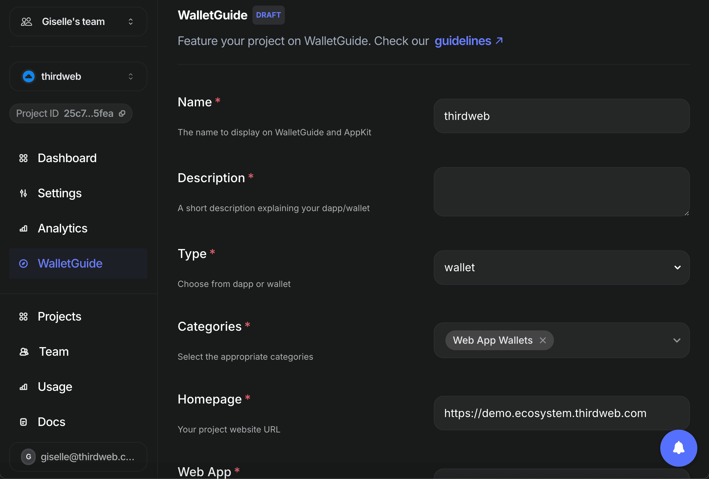How to Register Your thirdweb Ecosystem Wallet with WalletConnect (now Reown)